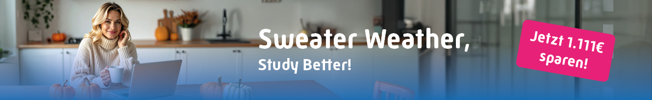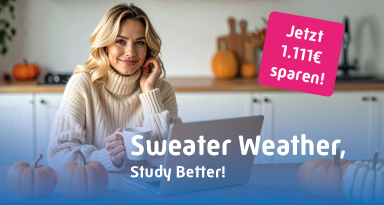 Der Herbst ist die perfekte Zeit zum Durchstarten: Melde dich zwischen dem 30. September und 21. Oktober 2025 mit dem Aktionscode „HERBST2025“ an und sichere dir 1.111 € Rabatt auf deinen Studienstart! Starte unverbindlich mit einem 4-wöchigen Probestudium und erlebe, wie flexibel, praxisnah und digital dein Studium bei EHiP sein kann – perfekt abgestimmt auf dein Leben.